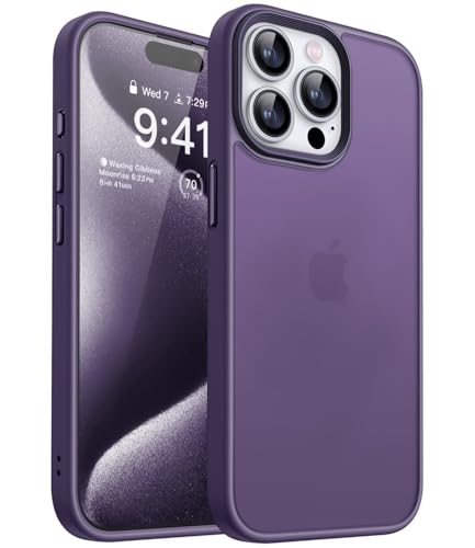 Dl3 Mobilak - جراب حماية ضد الصدمات والسقوط مطفي شفاف بلوري مضاد لبصمات الأصابع لموبايل آيفون 15 برو ماكس (6.7 بوصة) من دلع موبايلك (لون أرجواني)