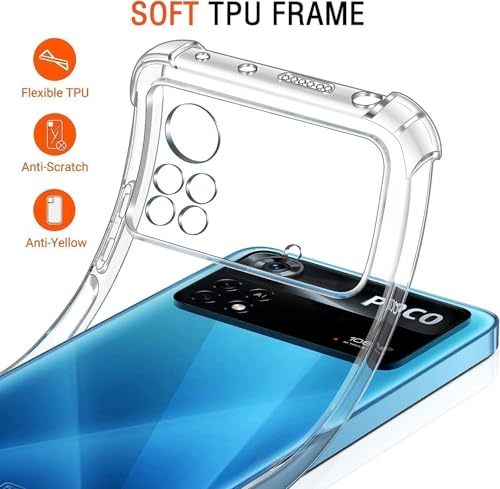 Dl3 Mobilak - جراب حماية خلفي شفاف مضاد للصدمات من السيليكون الناعم والبولي يوريثين المقاوم للحرارة دلـع موبايلك [حماية السقوط الدرجة العسكرية] [لا يصفر] لموبايل شاومي بوكو M4 برو شبكة الجيل الرابع 4G