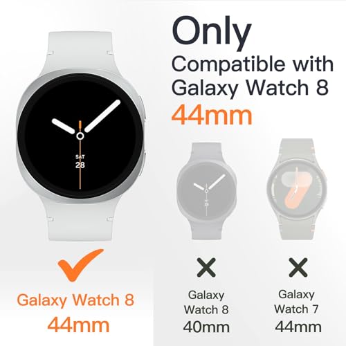 - الموديلات المتوافقة: جراب ممتص للصدمات لساعة دلـع موبايلك متوافق فقط مع ساعة سامسونج جالاكسي 8 مقاس 44 ملم. يرجى التحقق من الجزء الخلفي من الساعة، والتأكد من طلب المقاس الصحيح. ملاحظة: هيكل ساعة سامسونج جالكسي 8 مقاس 44 ملم مع ميزان معدني فقط، بدون واقي شاشة مدمج.