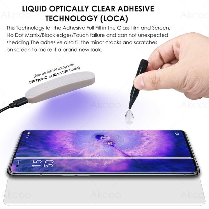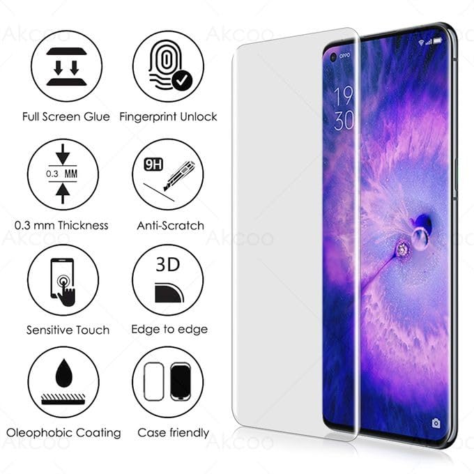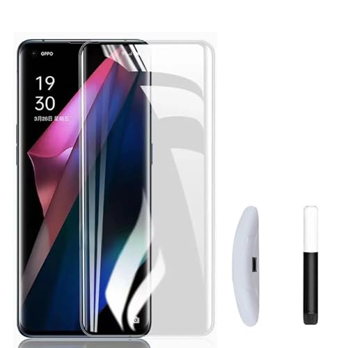 Dl3 Mobilak - شاشة حماية كاملة عالية الدقة HD من زجاج مقوى بالأشعة فوق البنفسجية السائلة متوافقة مع مستشعر بصمة الإصبع لموبايل اوبو فايند X5 برو شبكة الجيل الخامس 5G دلع موبايلك لون شفاف