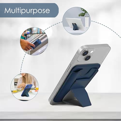 Dl3 Mobilak - دلـع موبايلك حامل بطاقات الجوال لمحفظة ماج سيف، حامل جوال مغناطيسي من الجلد النباتي، حامل محفظة مغناطيسي، لايفون 16 15 14 13 12 برو ماكس بلس (ازرق)
