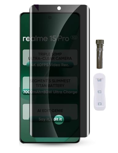 Dl3 Mobilak - دلـع موبايلك شاشة حماية للخصوصية لريلمي 15 برو من الزجاج بالاشعة فوق البنفسجية وقارئ بصمات الاصابع يدعم شاشة حماية منحنية ثلاثية الابعاد مضادة للتجسس من الزجاج المقوى
