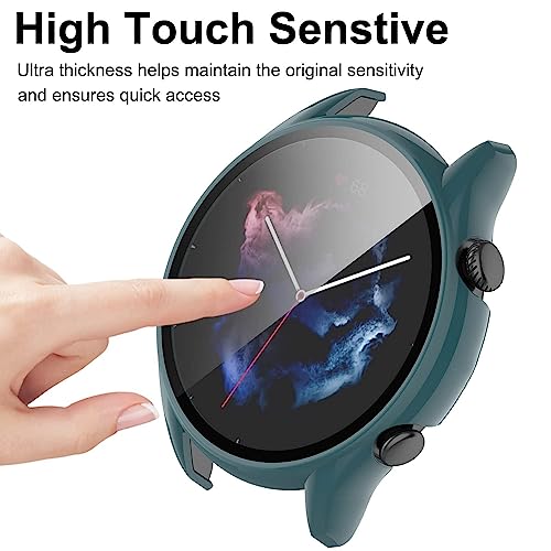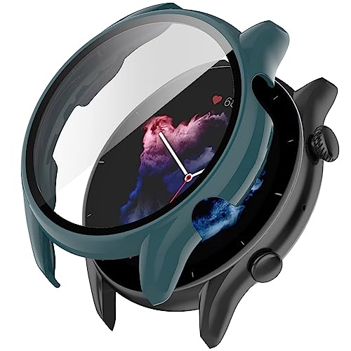 Dl3 Mobilak - جراب حماية رفيع وممتص للصدمات صلابة 9H من البولي كربونات مع زجاج مقوى متوافق مع امازفيت GTR 2 / GTR 2e أخضر من دلـع موبايلك، بلاستيك