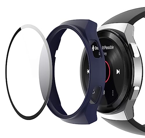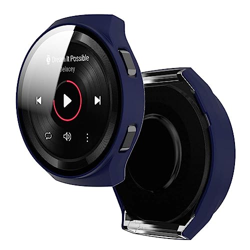 Dl3 Mobilak - جراب حماية متوافق مع ساعة هواوي جي تي 2e بدرجة صلابة 9H مصنوع من البولي كربونات ممتص للصدمات ورفيع بالكامل زجاج مقوى لموبايل GT2e دلـع موبايلك- أزرق
