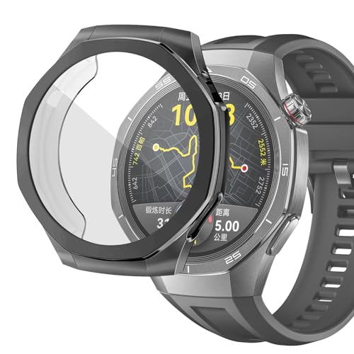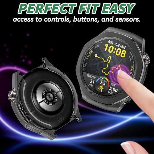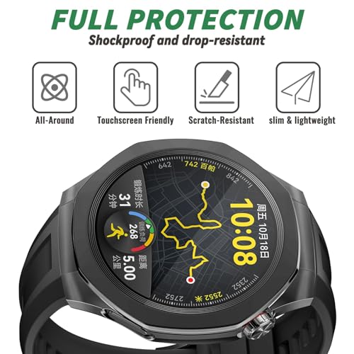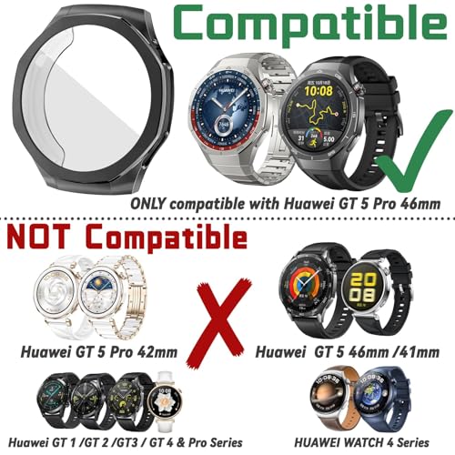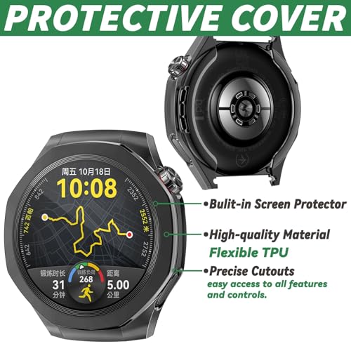 Dl3 Mobilak - جراب حماية متوافق مع ساعة هواوي جي تي 5 برو 46 ملم، جراب من البولي يوريثين الحراري المرن بالكامل مع شاشة حماية مدمجة، إطار ناعم وغطاء مضاد للصدمات لساعة هواوي GT5 برو من دلـع موبايلك، أسود