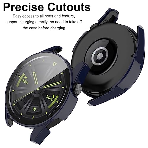 Dl3 Mobilak - جراب ساعة كامل رفيع ممتص للصدمات من بولي كربونات بدرجة صلابة 9 مع زجاج مقوى متوافق هواوي GT3 46 ملم دلع موبايلك أزرق