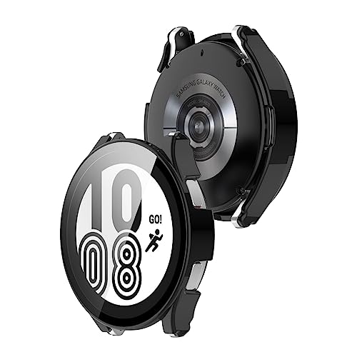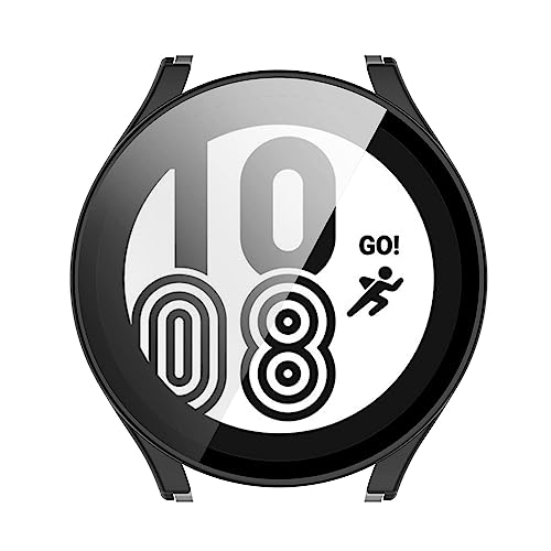 Dl3 Mobilak - غطاء حماية كامل نحيف متوافق مع ساعة سامسونج جالاكسي 4 40 ملم 2021 وساعة 5 2022 مصنوع من البولي كربونات بدرجة صلابة 9H ممتص للصدمات زجاج مقوى أسود دلـع موبايلك