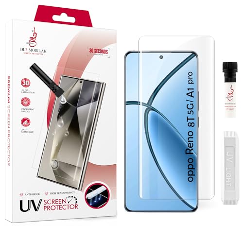 Dl3 Mobilak - دلـع موبايلك واقي شاشة اوبو رينو 8T 5G / اوبو A1 برو [زجاج مقوى سائل بالاشعة فوق البنفسجية] لاصق كامل الشاشة [لمس حساس] [متوافق مع مستشعر بصمات الأصابع] HD شفاف