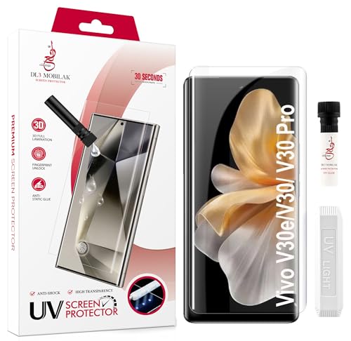 Dl3 Mobilak - دلـع موبايلك شاشة حماية فيفو V30 / V30 برو 5G [زجاج مقوى سائل بالاشعة فوق البنفسجية] لاصق كامل الشاشة [لمس حساس] [متوافق مع مستشعر بصمات الأصابع] HD شفاف