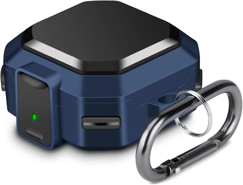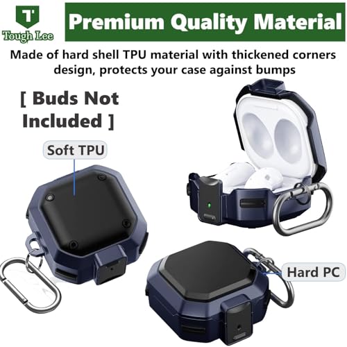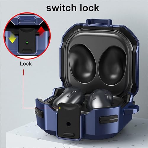 Dl3 Mobilak - دلـع موبايلك [قفل آمن] حافظة لسامسونج جالاكسي بادز FE 2023/جالاكسي بادز 2 برو 2022/بود برو 2021/بودز 2 2021/بودز لايف 2020، غطاء حماية متين لكامل الجسم مع سلسلة مفاتيح (ازرق اسود)