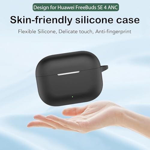Dl3 Mobilak - دلـع موبايلك جراب سيليكون متوافق مع سماعات هواوي فري بادز اس اي 4 ايه ان سي، غطاء حماية من السيليكون الناعم مضاد للصدمات مع حلقة تعليق (اسود)