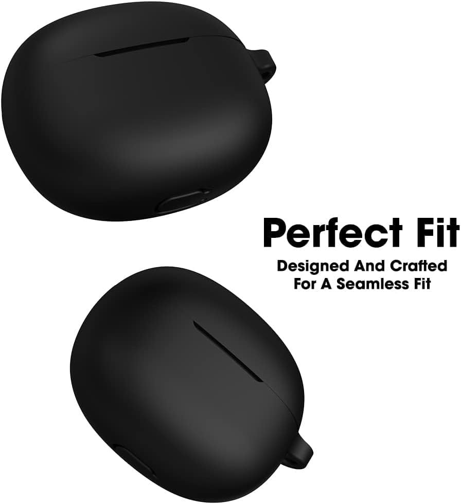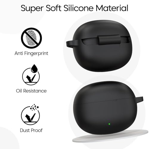 Dl3 Mobilak - جراب سيليكون متوافق مع سماعات أذن ريلمي بودز T110، جراب حماية من السيليكون الناعم مضاد للصدمات مع مشبك تعليق من دلع موبايلك (لون أسود)