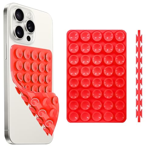 Dl3 Mobilak - قاعدة لاصقة مزدوجة الجوانب سيليكون لجراب الموبايل، إكسسوار يسمح بتثبيت الموبايل بدون اليدين، حامل قوي للموبايل لصور سيلفي وتسجيل الفيديو ومتوافق مع آيفون و أندرويد ويمكن من دلع موبايلك (لون أحمر)