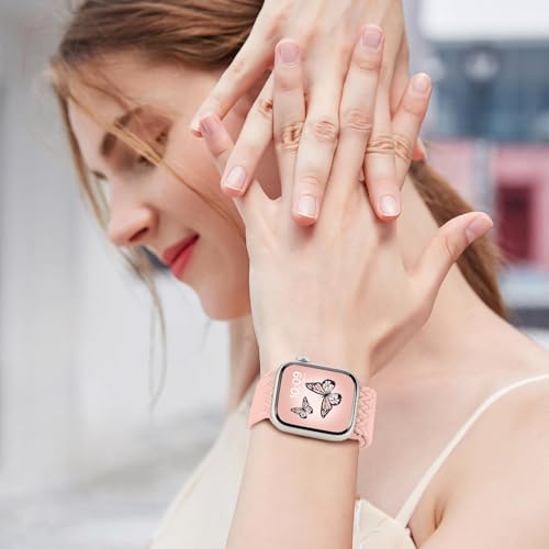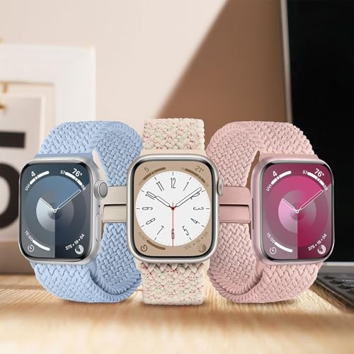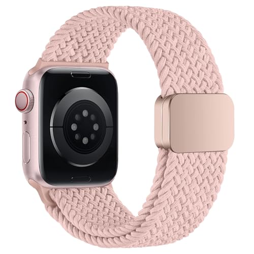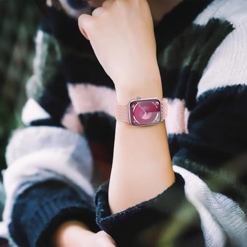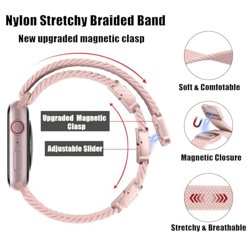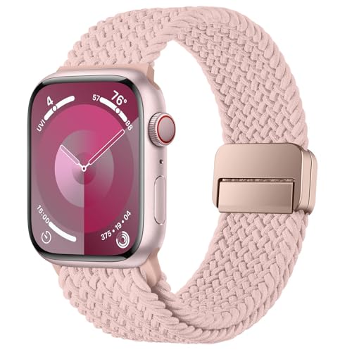 Dl3 Mobilak - سوار رياضي سولو لوب متوافق مع سوار ساعة آبل 42 ملم 44 مم 45 مم 46 مم 49 مم للنساء والرجال، حزام مغناطيسي مضفر قابل للتمدد لساعة آي ووتش سلسلة 10 9 8 7 6 5 4 3 الترا 2 1 SE من دلع موبايلك