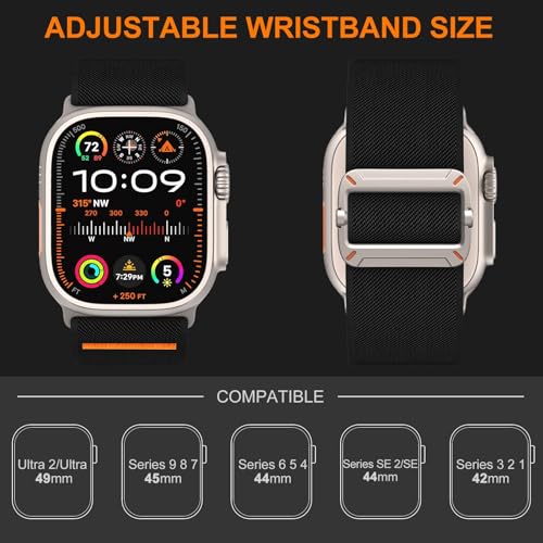 Dl3 Mobilak - سوار رياضي من دلع موبايلك متوافق مع ساعة أبل ووتش ألترا و ألترا 2 و سيريز 1-9 و إس إي، مصنوع من النايلون للرجال، مقاس 49/45/44/42 ملم