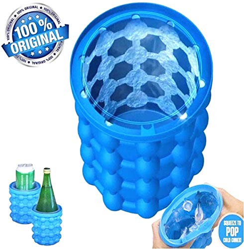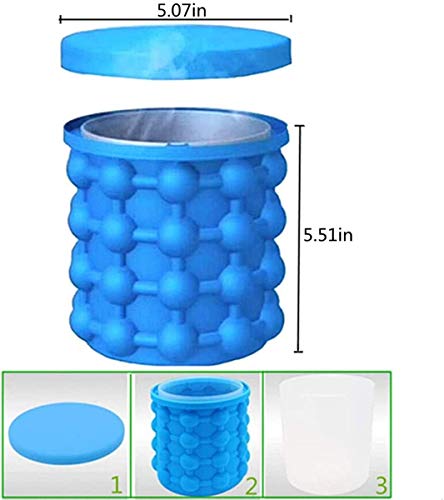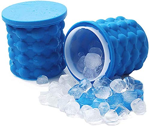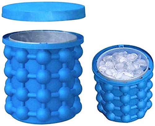 Spaceshoop - دلو ثلج كبير 2 في 1 من السيليكون مع غطاء من دي ال بي، صانع مكعبات ثلج من السيليكون، صانع مكعبات ثلج محمول من السيليكون (أزرق)