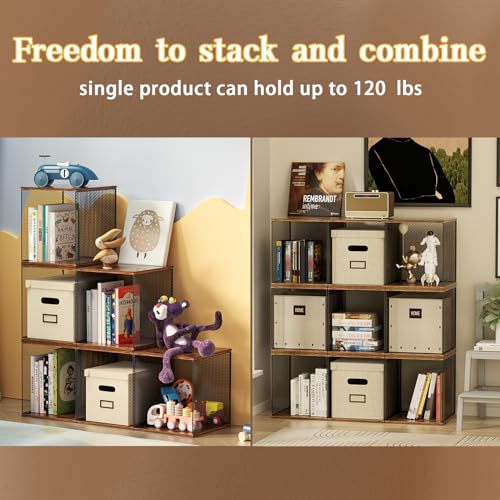 Dmevkic - ارفف كتب منظمة مكونة من 3 مكعبات من ديميفكيك، منظم تخزين مكعب متغير قابل للتكديس لغرفة نوم الاطفال وغرفة المعيشة، رف كتب صغير اسود وبني خشبي