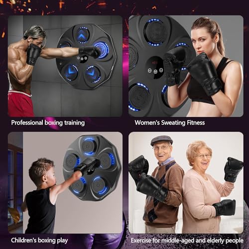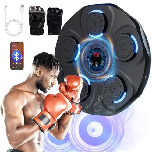 DMG TECH - آلة الملاكمة من دي ام جي، آلة ملاكمة موسيقية الكترونية مع جوانتي، مزود ببلوتوث ذكي يثبت على الحائط، وسادة تدريب الملاكمة تناسب المنزل والمناطق الداخلية والجيم