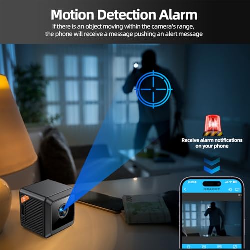 DMG TECH - كاميرا مراقبة صغيرة من دي ام جي مع اتصال بلوتوث - فيديو HD 1080P ومنبه كشف الحركة وعدسة بزاوية عريضة 140 درجة ورؤية ليلية بالاشعة تحت الحمراء وبطارية 600mAh للمراقبة المنزلية