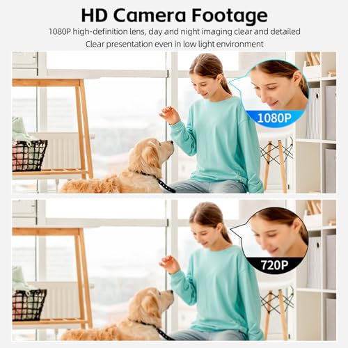 - 【شاشة عالية الدقة بدقة 1080 بكسل】التقط لقطات واضحة أثناء النهار والليل مع عدسة عالية الدقة، مما يوفر صورًا مفصلة حتى في ظروف الإضاءة المنخفضة - تباين وضوح فائق 1080 بكسل مقابل بدائل ضبابية 720 بكسل لتتبع النشاط بدقة.