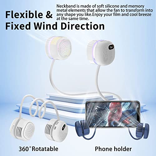 - 【اتجاه رياح مرن وثابت 360 درجة】شريط الرقبة مصنوع من السيليكون الناعم وعناصر معدنية الذاكرة تسمح للمروحة بالتحول إلى أي شكل تريده. على سبيل المثال مروحة سطح المكتب ومروحة الرقبة ومروحة عربة الأطفال وحامل الهاتف. يمكن ضبط شريط الرقبة بحرية ليناسب أي شخص بأي حجم، ويمكن تثبيته بأي زاوية تريدها.