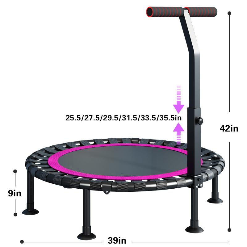 DMG TECH - ترامبولين مع مقبض مغطى بالفوم قابل للتعديل على شكل T، ترامبولين رياضي ثابت وهادئ مثالي للتمارين الداخلية للجسم واللياقة البدنية مناسب للبالغين والأطفال من دي ام جي تك