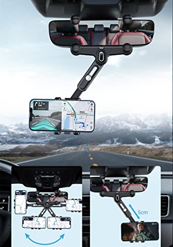 DMJWAN - حامل موبايل للسيارة على مراية الرؤية الخلفية بدعامة قابلة للتعديل وقابلة للدوران 360 درجة وللسحب من دي ام جوان