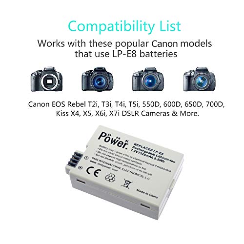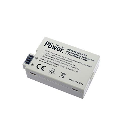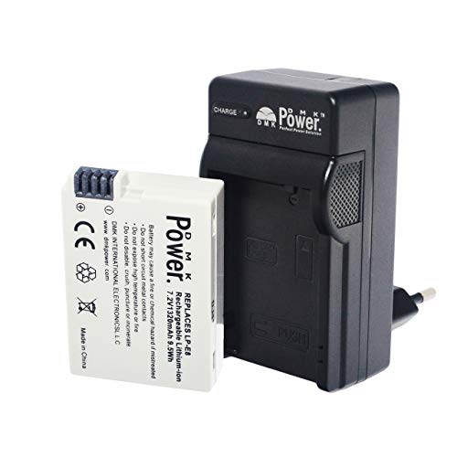 DMK POWER - بطارية ال بي - اي 8 من دي ام كيه باور (1320 ميلي امبير في الساعة) وشاحن بطارية متوافق مع كاميرا كانون T2i T3i T4i T5i EOS 550D EOS 600D EOS 650D EOS 700D، كاميرات ديجيتال ذات عدسة أحادية عاكسة