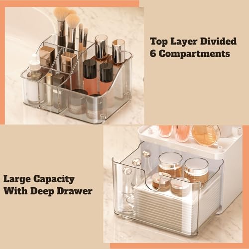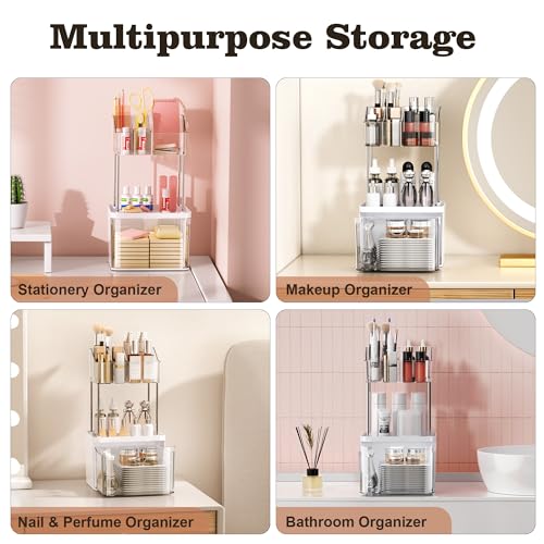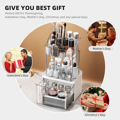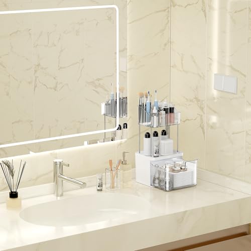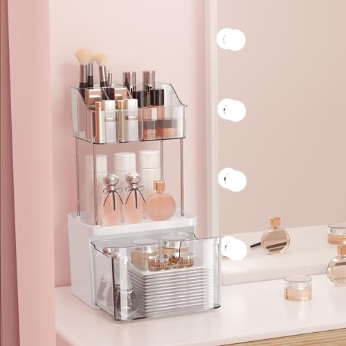 DOADW - منظم سطح الحمام من دوادو مزود بدرج – منظم مكياج بثلاث طبقات للطاولات الصغيرة – شفاف متعدد الاستخدامات لتنظيم أدوات المكياج والعناية بالبشرة