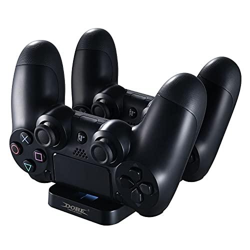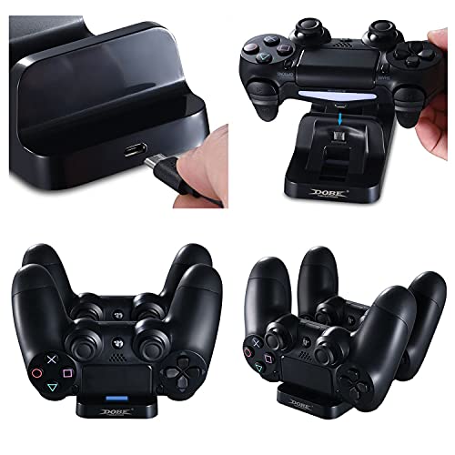 DOBE FOMIS ELECTRONICS - شاحن من دوبي بتقنية USB، متوافق مع أجهزة الألعاب، بمنفذين، قاعدة شحن لجهاز بلاي ستيشن 4 و4 سليم مع مؤشر LED