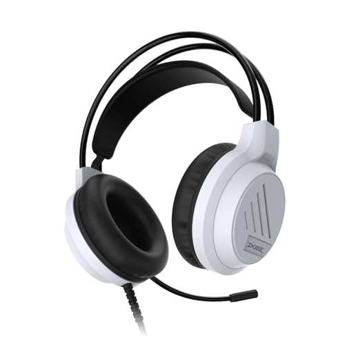 DOBE FOMIS ELECTRONICS - سماعات رأس متوافقة مع وحدات تحكم أجهزة بلاي ستيشن 5 و4 والكمبيوتر واكس بوكس وسويتش من دوبي (لون أسود وأبيض)، مقاس 3.5 ملم، موديل TP5-3592