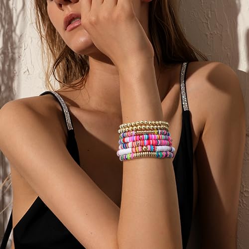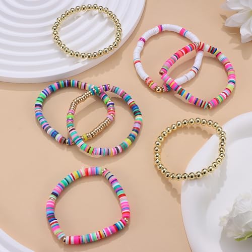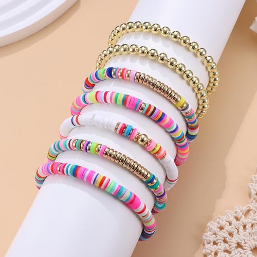 Dochais - دوكيهس مجموعة اساور سيرفر، 7 قطع من اساور قوس قزح، سوار خرز بوهو، سوار خرز ملون، مجموعة اساور حبل مطاطي، سوار شاطئ صيفي للنساء والفتيات