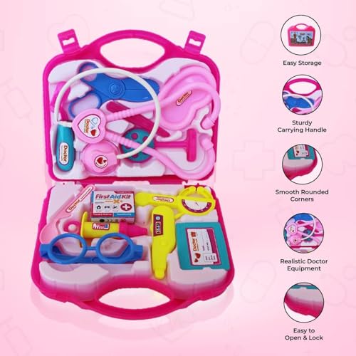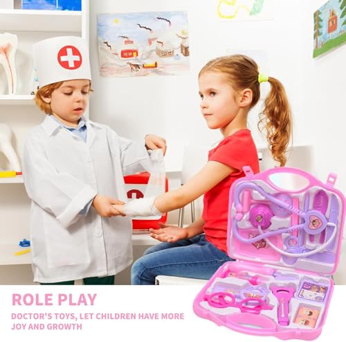 Generic - مجموعة ألعاب حقيبة الطبيب للأطفال من 3 سنوات، 15 قطعة من شنطة الطبيب مع سماعة دكتور حقيقية، ميزان حرارة وحقنة للعب الأدوار، لعبة تعليمية طبية، لعبة حفلة (وردي)