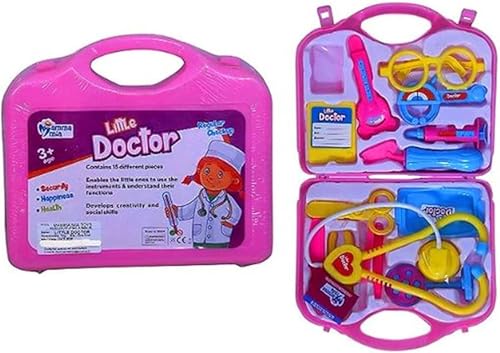 Generic - مجموعة ألعاب أدوات الطبيب التظاهرية للاطفال مع شنطة قابلة للطي واكسسوارات طبية مدمجة للأولاد والبنات من سن 3 سنوات فما فوق - (لون وردي)