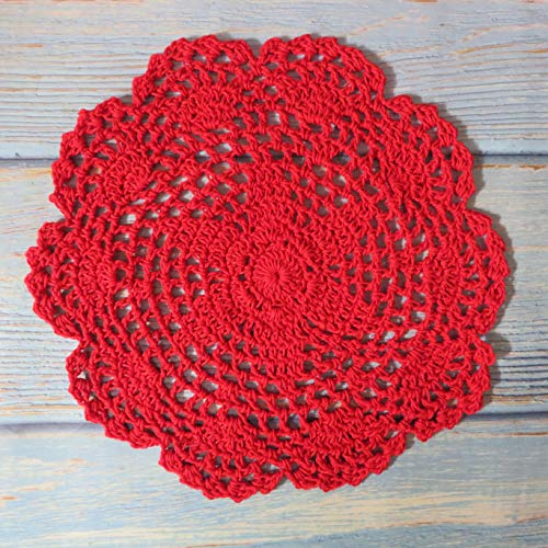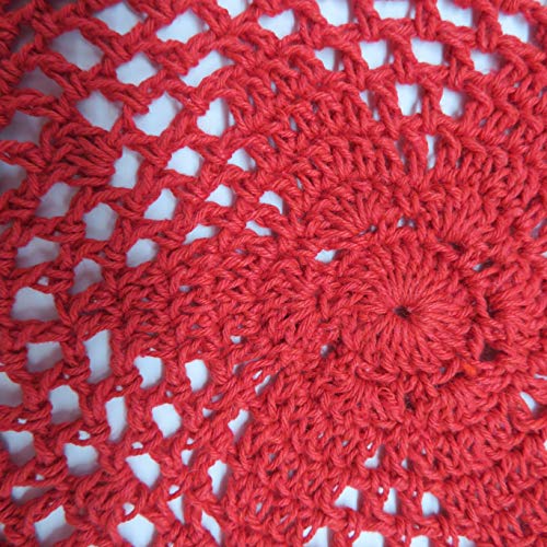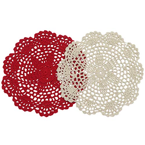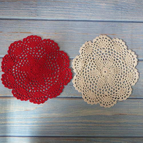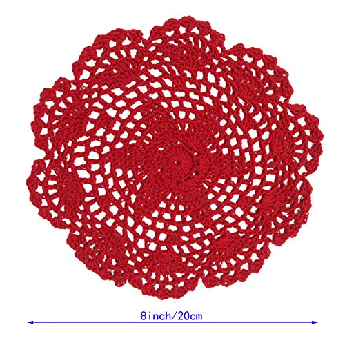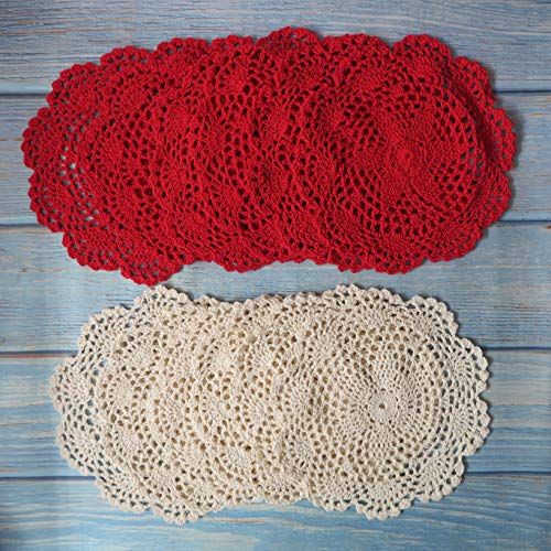 DODOGA - مجموعة مفارش كروشيه مستديرة مصنوعة يدويا من القطن مقاس 8 بوصة من دودجا مكونة من 12 قطعة، مناسبة للطاولات والمطبخ والاكواب والبولات الزجاجية، 6 قطع بلون احمر + 6 قطع بلون بيج