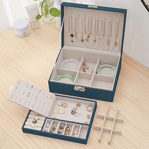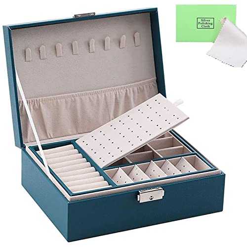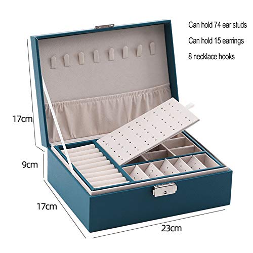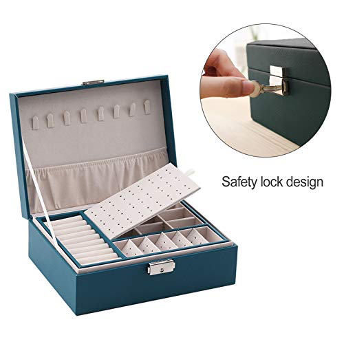 Juliyeh - صندوق مجوهرات محمول للسفر مع قفل لتنظيم الخواتم والحلقان ومجوهرات النساء، 23 × 17 × 9 سم، أخضر غامق