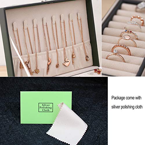 - صندوق تنظيم مجوهرات متعدد الوظائف: تصميم أنيق، مزدوج الطبقات، مصنوع من البولي يوريثين عالي الجودة، يمكن استخدامه مع الحلقان والسلاسل والأساور والساعات.