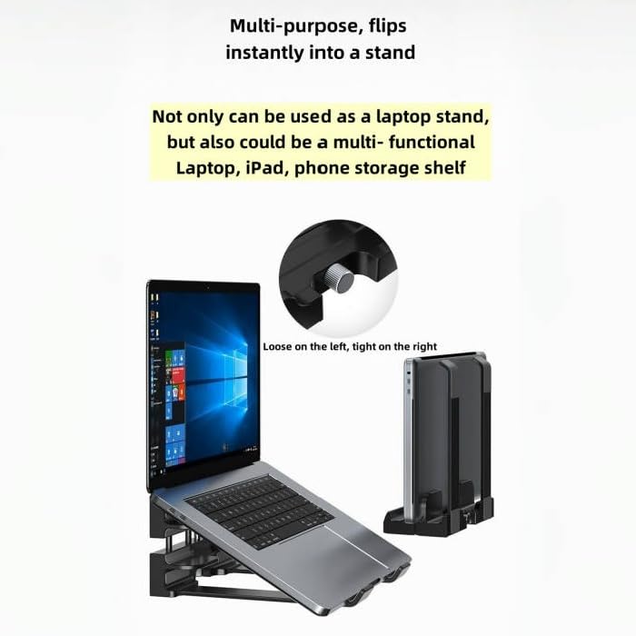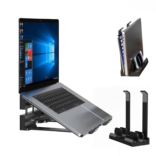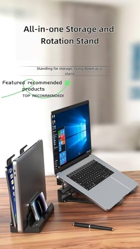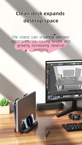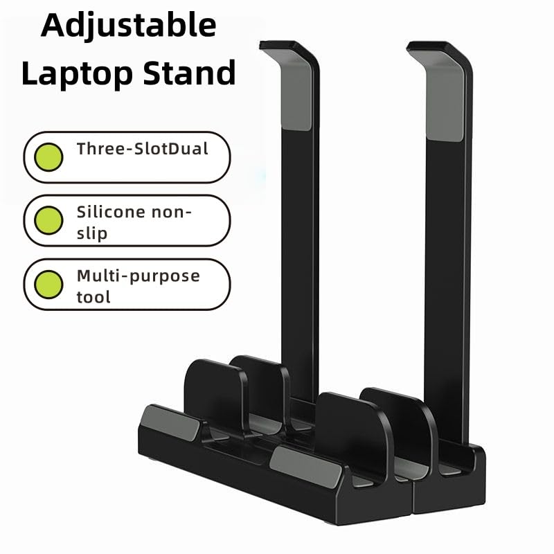- تصميم متعدد الاستخدامات: منظم عمودي بثلاث فتحات مع حامل لاب توب قابل للتعديل، مثالي لتخزين وعرض أجهزة اللاب توب والتابلت والهواتف في وقت واحد