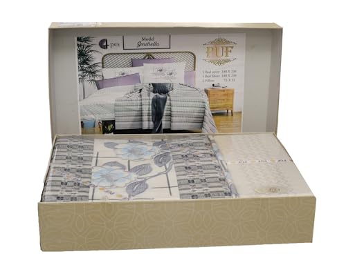Egyptian Textile - طقم بوف & دوجا، 1 كوفرته مقاس 220×240 + 1 ملاية مقاس 230×240 + 2 خدادية مقاس 55×75، 4 قطع سوفت فايبر معالج ، رصاصي - 16799
