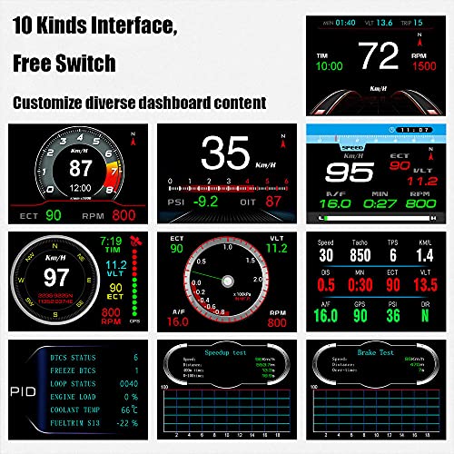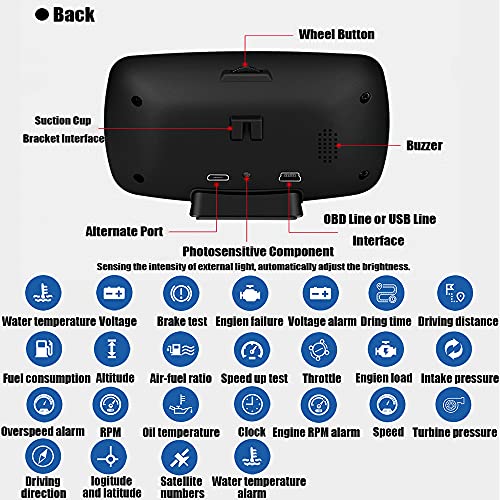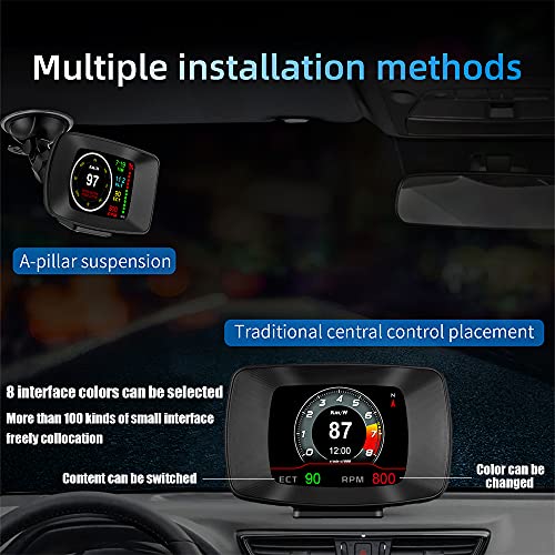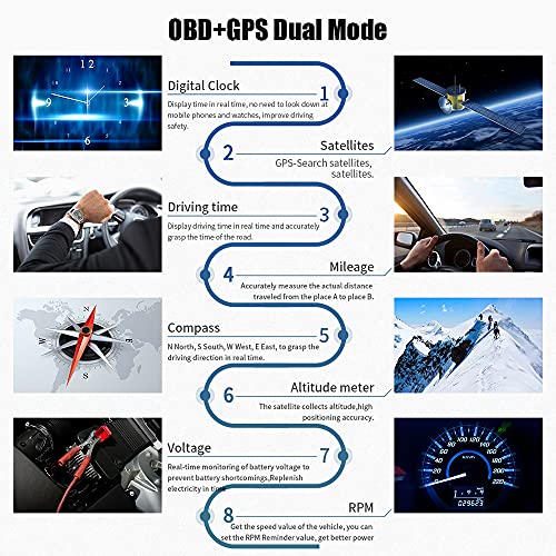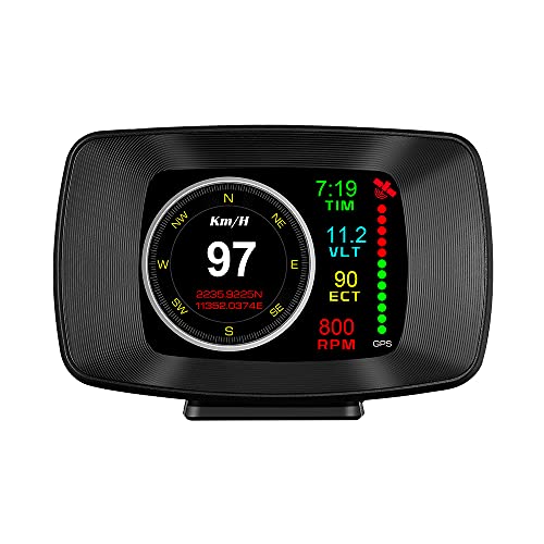 DOITEE - شاشة عرض أمامية متعددة الوظائف من دويتي، عداد ذكي OBD 2، شاشة عرض اتش يو دي ؛13، نظام OBDII ونظام تحديد المواقع GPS مزدوج