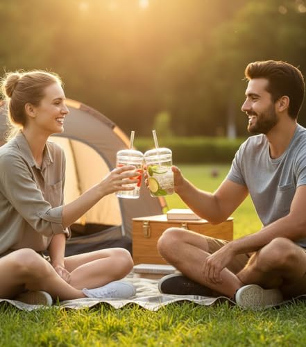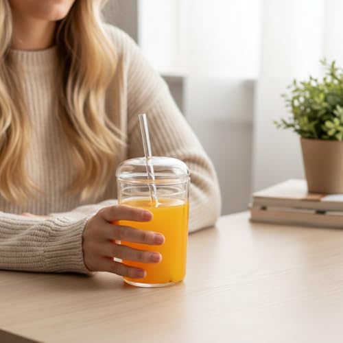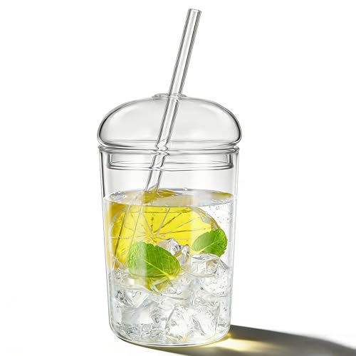 DOITOOL - كوب زجاجي بغطاء وشفاطة بمظهر شفاف جمالي، قابل لإعادة الاستخدام لشاي البوبا والعصير والقهوة المثلجة من دويتول