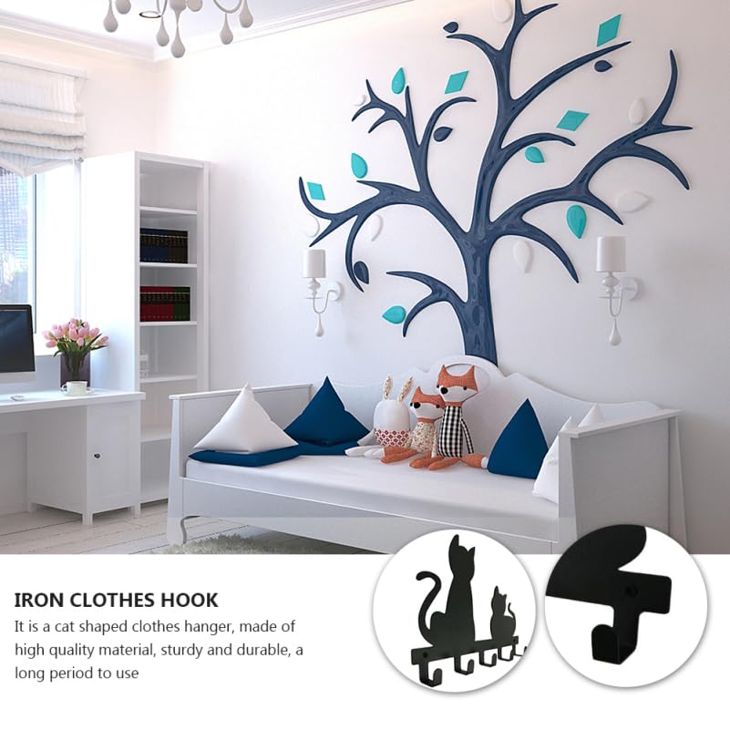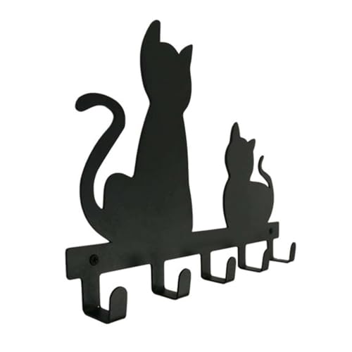 DOITOOL - دويتول خطافات تعليق المعاطف على شكل قطة كرتونية حيوان كرتوني رف معاطف بدون ثقب ملابس حامل مفاتيح لتزيين المنزل وغرفة النوم اسود حديد 35.0 رطل 35.0 .