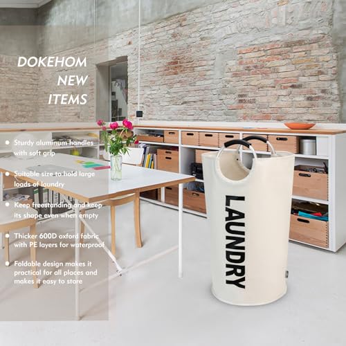 DOKEHOM - سبت غسيل كبير وطويل قابل للطي وقائم بذاته من دوك هوم، لون بيج، سعة 90 لتر