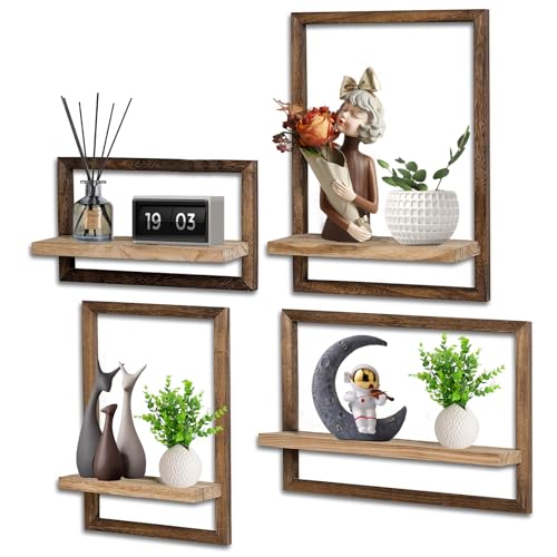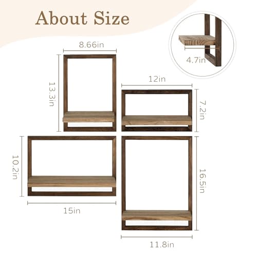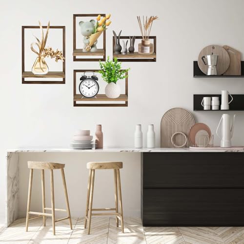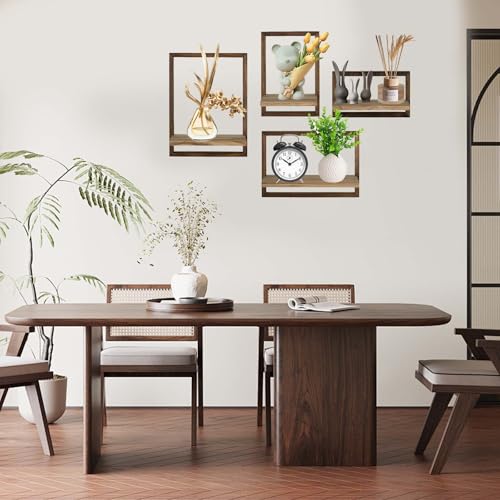 Dokeno - أرفف عائمة خشبية متعددة الأغراض، أرفف صلبة مزخرفة وعملية معلقة على الحائط للمطبخ والحمام وغرفة المعيشة والمكتب من دوكينو - 4 قطع
