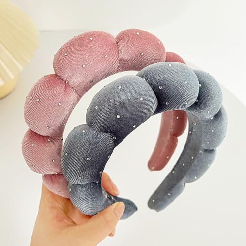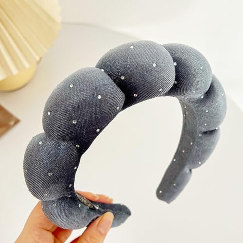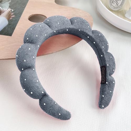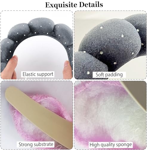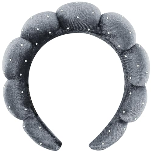Dolebao - أربطة رأس ناعمة من قماش تيري مزينة بحجر الراين للعناية بالبشرة وغسل الوجه وإزالة المكياج وعلاج البشرة أثناء الاستحمام والسبا واستخدام علاجات البشرة من دوليباو، لون رمادي