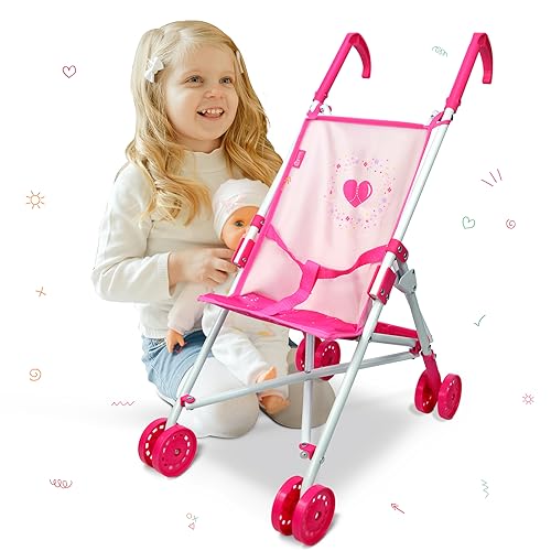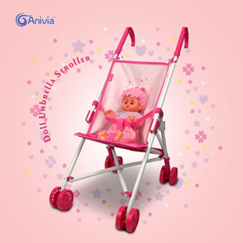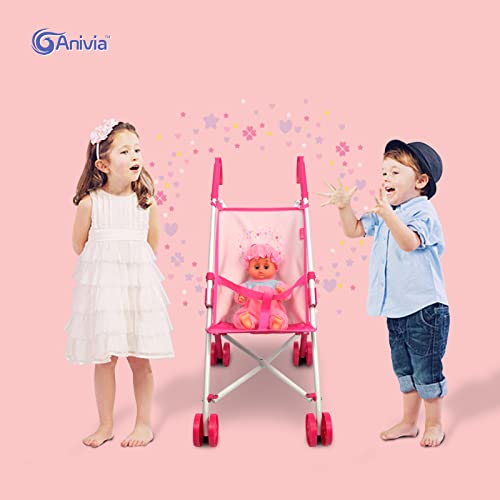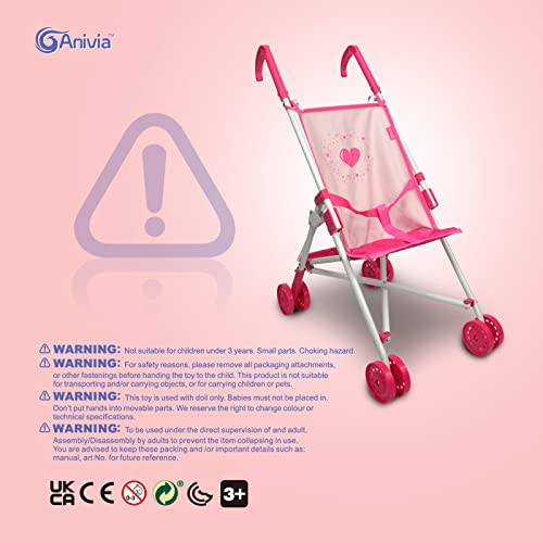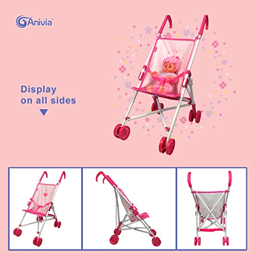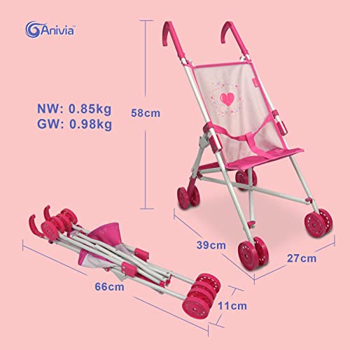 Anivia - لعبة عربة دمى انيفيا واقعية بتصميم قلب، هدايا للاطفال الصغار والبنات، لعبة عربة اطفال قابلة للطي باللون الزهري 102