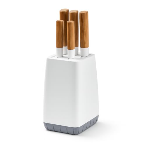 Dollar for Import - طقم سكاكين شيف من فولاذ مقاوم للصدأ، أدوات مائدة حادة للغاية بمقبض قوي مع حامل، 5 قطع (أبيض)