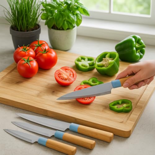 - شفرات فاخرة من الفولاذ المقاوم للصدأ - مصنوعة من الفولاذ مقاوم للصدأ عالي الجودة، وتوفر هذه السكاكين حدة استثنائية مع المتانة والأداء طويل الأمد.