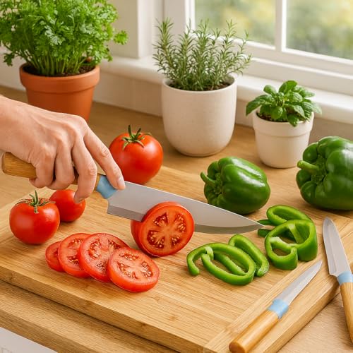 - مثالية للطهاة والمحترفين في المنزل - مجموعة السكاكين هذه مصممة لتلبية جميع احتياجات الطهي الخاصة بك بسهولة وأناقة سواء كنت مبتدئًا أو طباخًا متمرسًا.