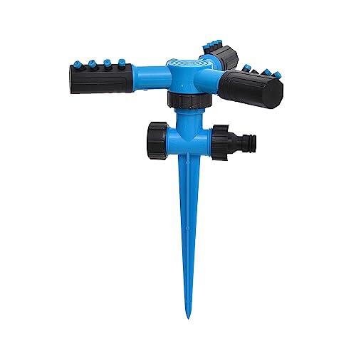 Dollar for Import - مرش حديقة بلاستيكي مع 3 فوهات مرشات العشب مرشة دواره تعمل بنظام الرش التلقائي 360 درجة - ازرق واسود
